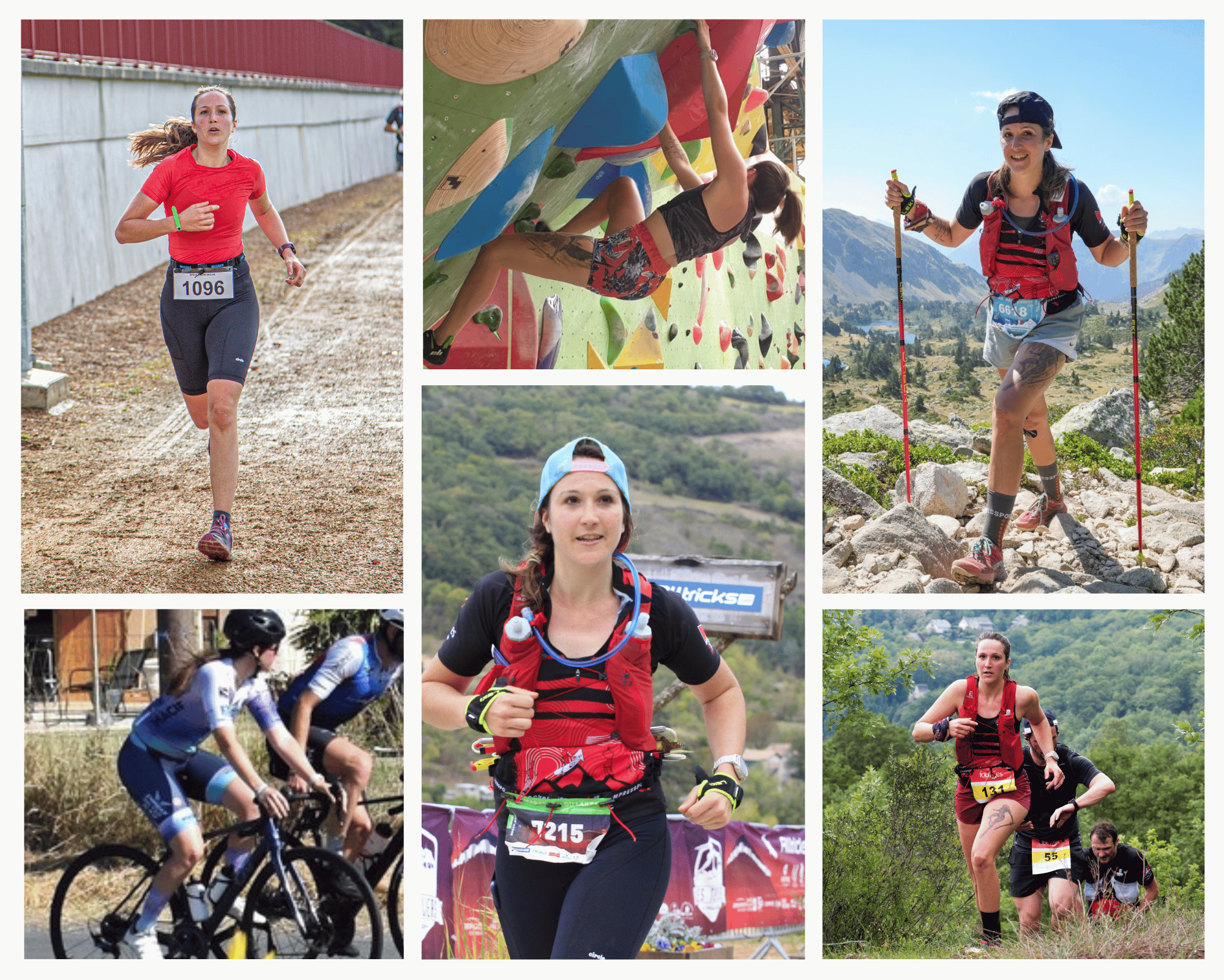 Trail depuis 2021, vélo depuis 2022, beaucoup de rando, de muscu et du yoga. Depuis mon crash dans le mur, ma pratique est apaisée, intuitive, vivante.