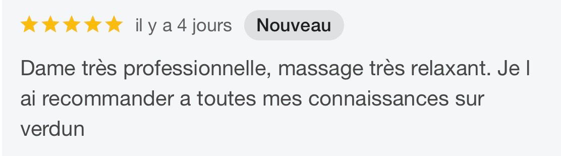 đ Ă Verdun, je propose ce soin en format 30 minutes, centrĂ© sur les zones clĂ©s : jambes, dos, Ă©paules⊠selon vos besoins du moment.